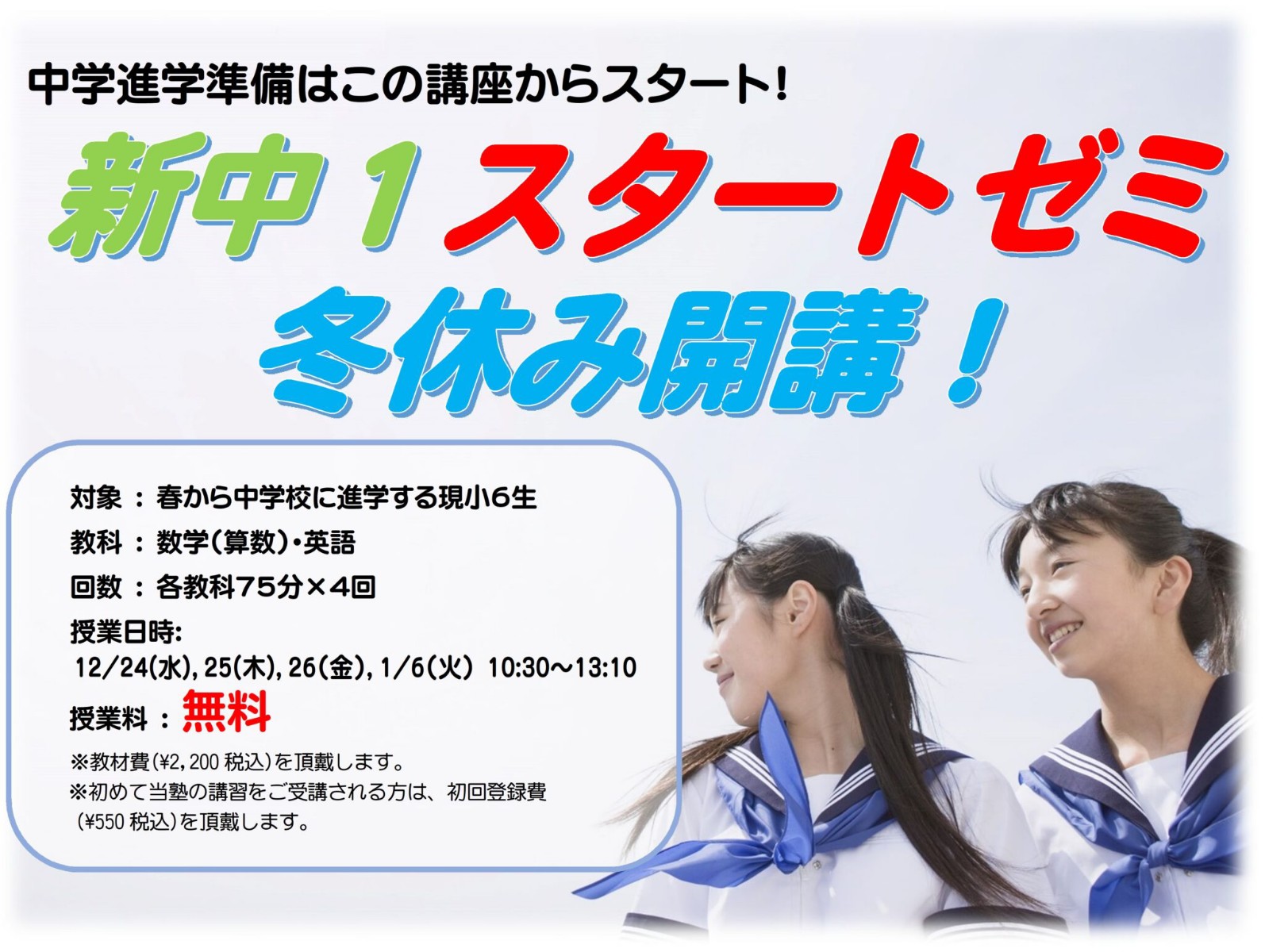 新中1(現小6)生対象 新中1スタートゼミ 冬休みに開講!